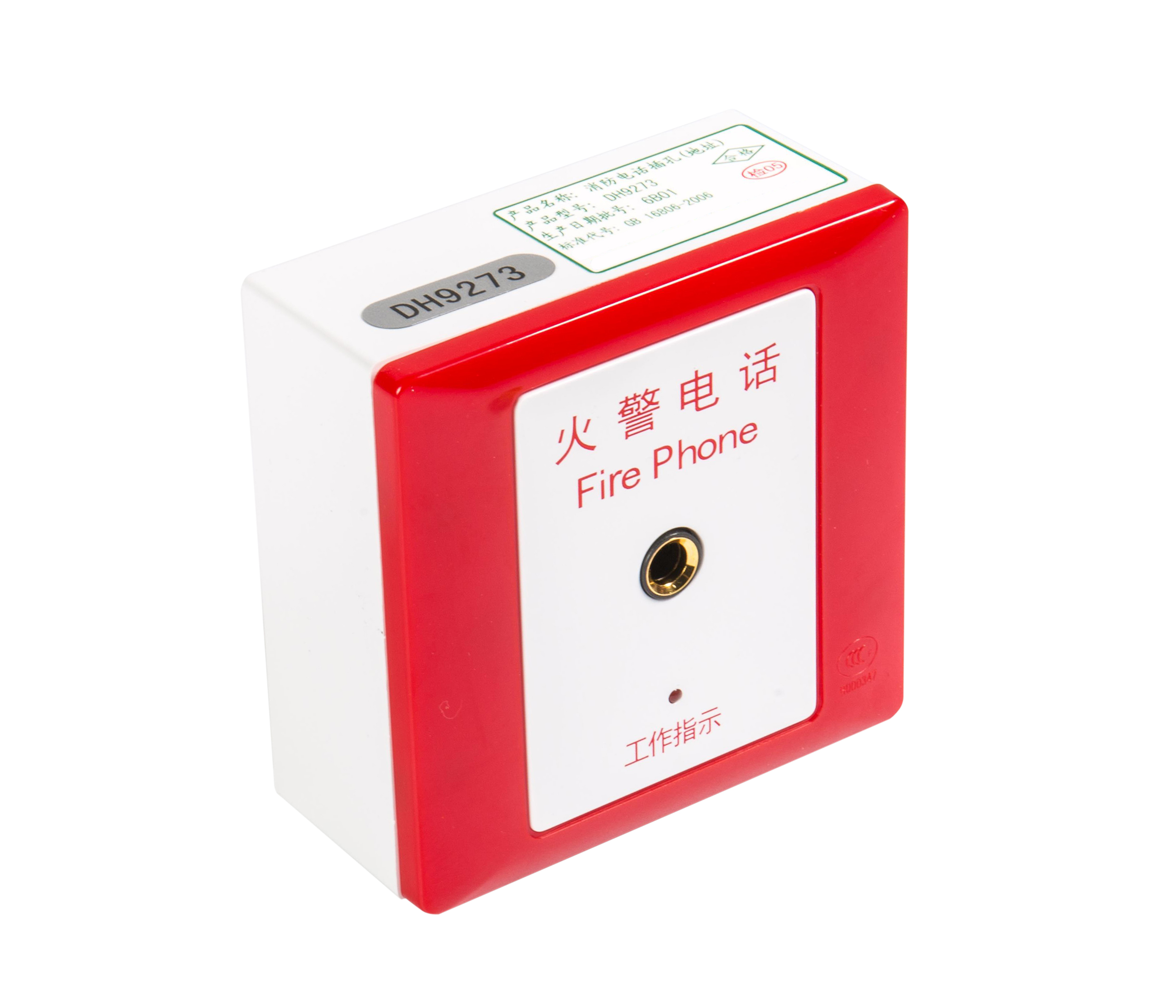 DH9273帶地址編碼,配合DH9261/B總線製消防電話主機和DH9271消防電話分機使用。可並聯DH9273非編址電話插孔或EI6021手動報警按鈕上的電話插孔,共用一個地址。
