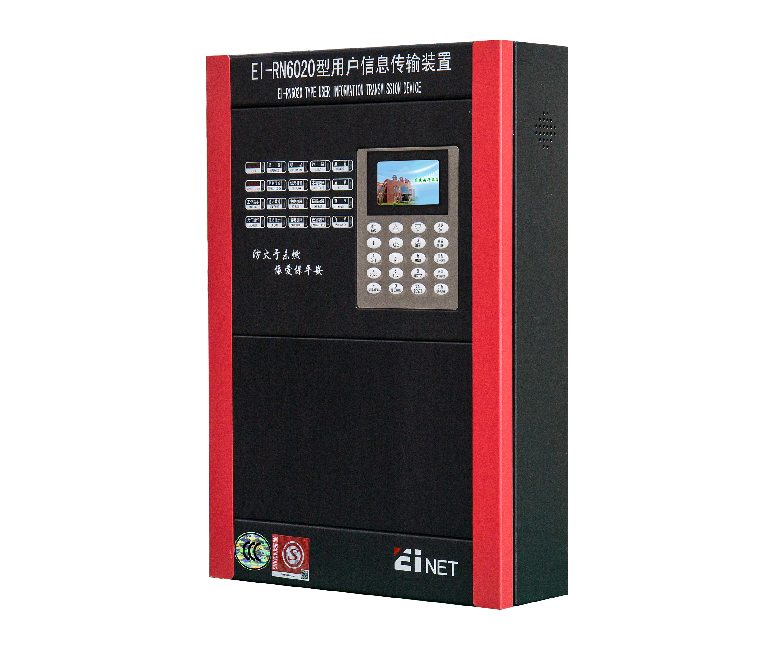 EI-RN6020型用戶信息傳輸裝置按照國家標準GB26875.1-2011《城市消防遠程監控係統 第一部分:用戶信息傳輸裝置》設計,可實現對分散的建築消防設施進行集中監控,是城市消防遠程監控係統中不可缺少的部分。