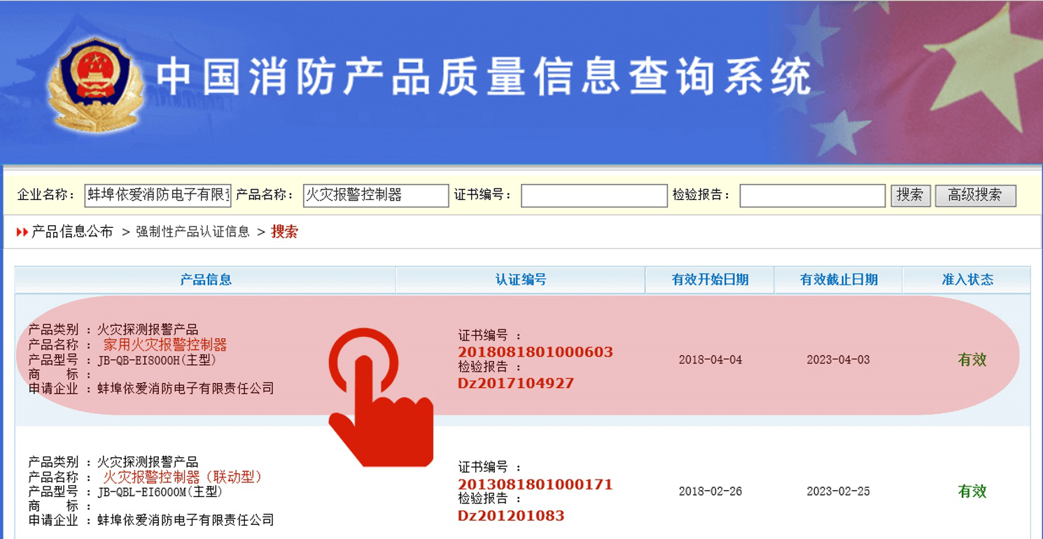 คลิกที่ผลิตภัณฑ์ที่เกี่ยวข้องเพื่อตรวจสอบใบรับรอง 3C ล่าสุดและข้อมูลรายงานการตรวจสอบเช่นคลิก "Home Fire Alarm Controller"