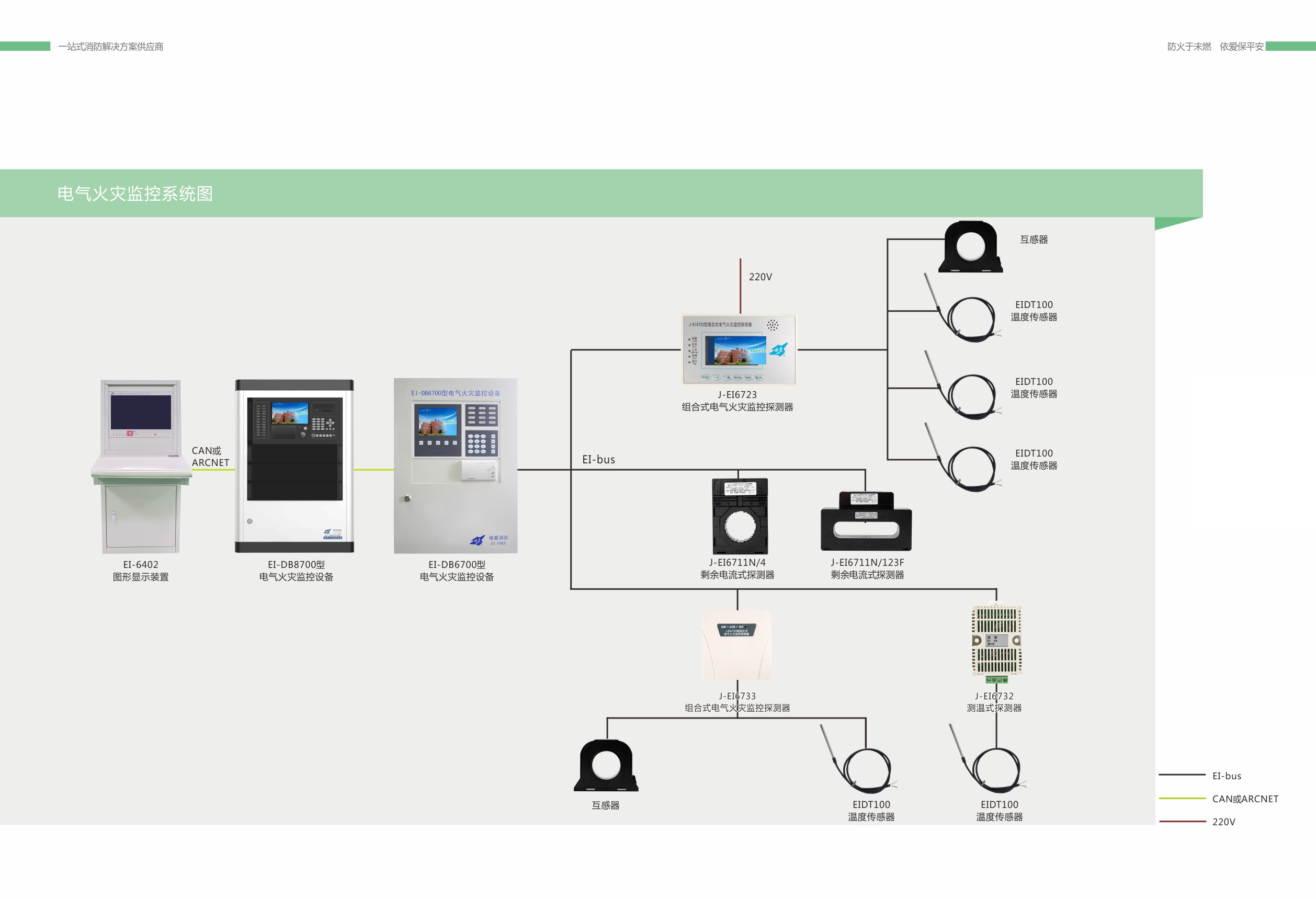電氣火災監控係統與火災報警係統是相輔相成的,並將作為火災報警係統的一個子係統(火災預警係統)。本公司研發的 EI 係列電氣火災監控係統既可以自成係統,獨立使用,也可以接入消防控製室圖形顯示裝置,由消防控製室圖形顯示裝置顯示報警信息。
